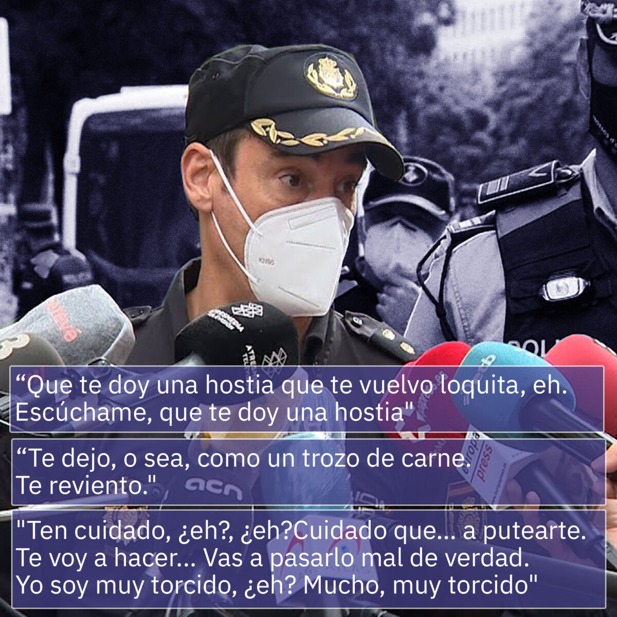 En esta misma conversación el comisario parece arrepentirse… “O sea, no quiero”, pero añade: “Te he cuidado, pero no me vuelvas a tocar más los cojones. Porque no creo que seas imbécil. Y a veces me da la impresión de que lo eres. Porque si haces estas cosas después de las veces que te lo digo, es que eres retrasada mental. Si no, no lo entiendo. O sea, si yo te lo digo y tú sigues haciéndolo, sufres un retraso mental”.