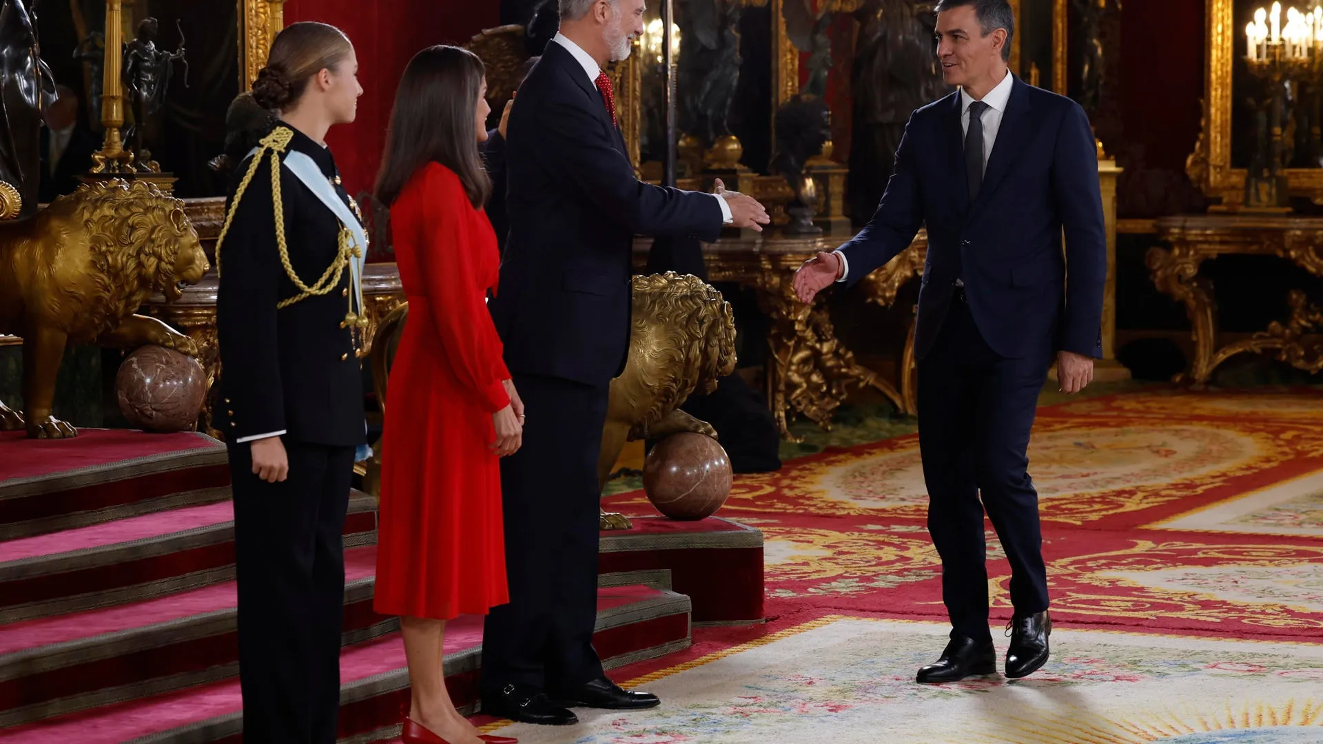 El presidente del Gobierno ha iniciado el besamanos, acompañado por su mujer, Begoña Gómez. Todos los ministros han acudido, salvo la portavoz del Ejecutivo, María Jesús Montero - a raíz de una lesión de rodilla- y la titular de Infancia, Sira Rego.