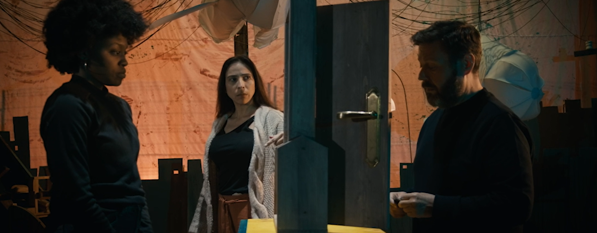 Díaz construye Adiós Cuba en ese territorio intermedio donde la ficción y el documental se mezclan. No hay una frontera clara. Los testimonios son reales, pero están atravesados por una puesta en escena muy contenida, casi teatral, donde la palabra, el cuerpo y el espacio pesan más que cualquier artificio. Caridad funciona como eje inestable: a veces personaje, a veces extensión de una experiencia real, incluso del propio director. Esa ambigüedad no busca confundir, sino acercarse a una verdad que no se deja fijar fácilmente.