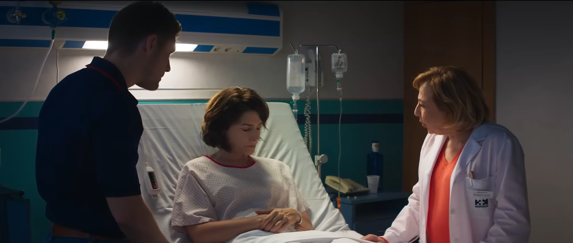 Aquí, más concretamente, Almodóvar opone la necesidad de crear y las consideraciones éticas que implica, cuestiona la legitimidad de las fuentes de su inspiración. Y es sobre todo en virtud de la honesta reflexión al respecto derivada de ella que la puesta en abismo de Amarga Navidad resulta mucho más certera que, sin ir más lejos, las que el propio director propuso en La mala educación (2004) o Los abrazos rotos (2009). La película arranca presentándonos los ataques de pánico de Elsa (Bárbara Lennie), una directora de culto que, según vamos descubriendo, no logra superar la muerte de su madre y que, para volver a escribir, se inspira en las tragedias vitales de sus amigas mientras descuida su relación con un bombero stripper llamado Bonifacio (Patrick Criado).