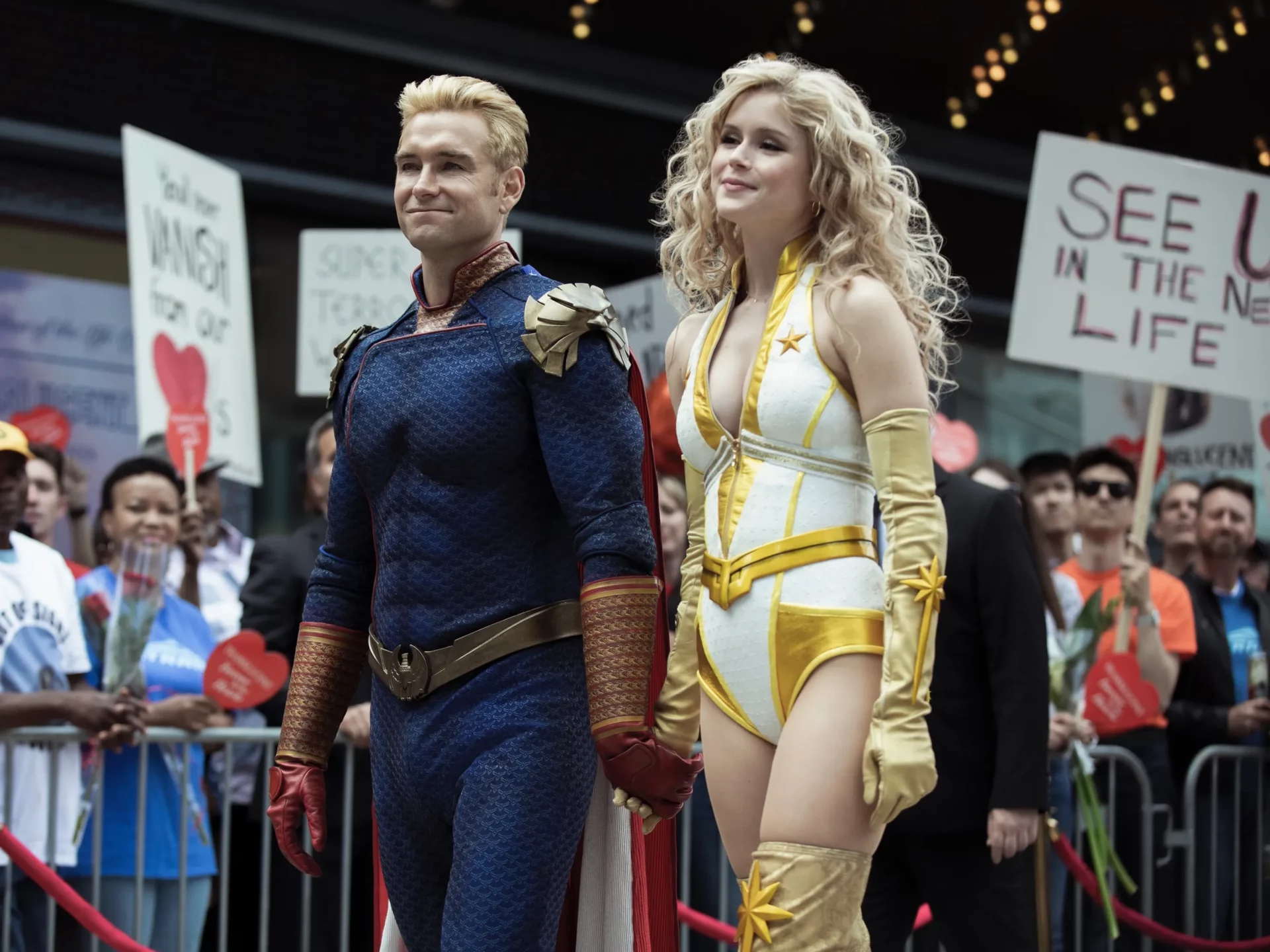 Por ahora, que sepamos, ningún líder lanza rayos láser por los ojos, pero no sé si dudarían mucho más que Homelander en utilizarlos, viendo la facilidad con la que se lanzan misiles y armamento de todo tipo a diestro y siniestro. De todas formas, igual que en la serie, por ahora no parece haber consecuencias, incluso hay algún que otro aplauso. Así que, en el fondo, no estamos tan lejos…