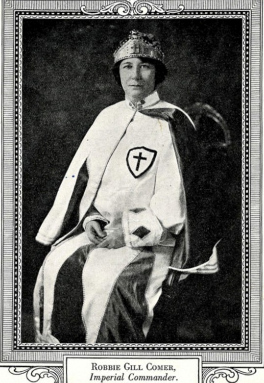 Ese fue el momento en que las mujeres del Klan tomaron el poder, o, al menos, una parcela de este. La expresidenta del capítulo de Arkansas de la Unión Femenina por la Templanza, Lulu Markwell, se convirtió en primera Comandante Imperial del WKKK. Renunciaría a su puesto en 1924, siendo sucedida por su secretaria, Robbie Gill, quien poco después contrajo matrimonio con el abogado James Comer, Gran Dragón del Klan de Arkansas, personaje fundamental para convencer al Klan de dar su visto bueno a la organización femenina. De hecho, algunos miembros masculinos habían sido instrumentales en la formación de las varias sociedades secretas supremacistas de mujeres, con nombres tan encantadores como Las Kamelias (con K de Klan) o tan pulp como Las Reinas de la Máscara Dorada, que precedieron al WKKK.