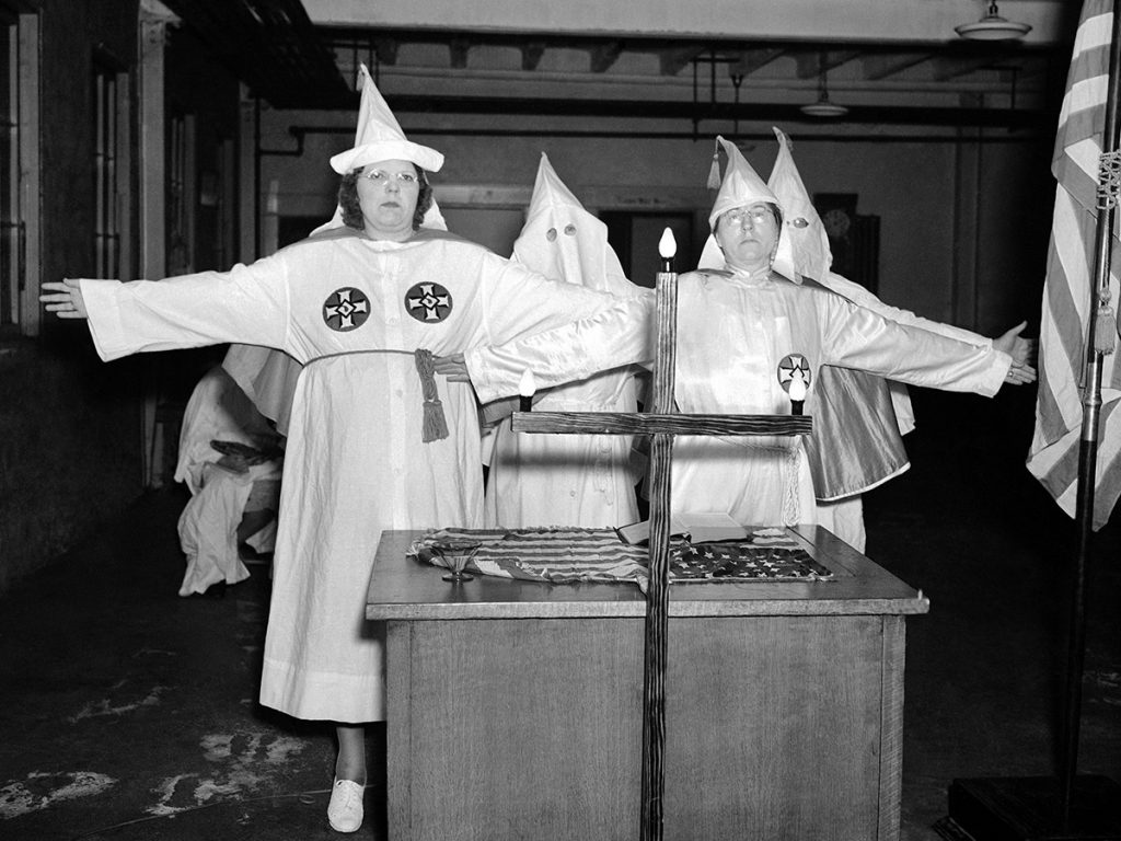 A las modernas flappers que manejaban hombres y coches con la misma soltura y descaro, mientras sostenían un vaso de whisky en algún recóndito speakeasy, contoneándose al ritmo de la infernal música negra de jazz, respondían aquellas feministas por la temperancia que habían contribuido a la Prohibición del alcohol —y con ello indirectamente al nacimiento del crimen organizado—, apoyaban políticos conservadores e incluso movimientos de extrema derecha evangélicos, radicales y racistas. Al tiempo que defendían la escolarización obligatoria, la educación igualitaria, la prohibición de la explotación infantil y los derechos de las madres trabajadoras, apoyaban la segregación, abogando por la prohibición del matrimonio interracial y la total separación entre población blanca y negra. Por la criminalización de las parejas mixtas y una escala de derechos totalmente distinta para blancos y negros. Incluso para blancos anglosajones protestantes y el resto de la población de cualquier otro credo o extracción étnica diferentes a los suyos. Con el voto recién conquistado, muchas lo entregaron a políticos reaccionarios y xenófobos. Fue así como el diez de junio de 1923 se formaba en Arkansas la organización nacional Mujeres del Ku Klux Klan (WKKK), con sede en Little Rock (condado de Pulaski).