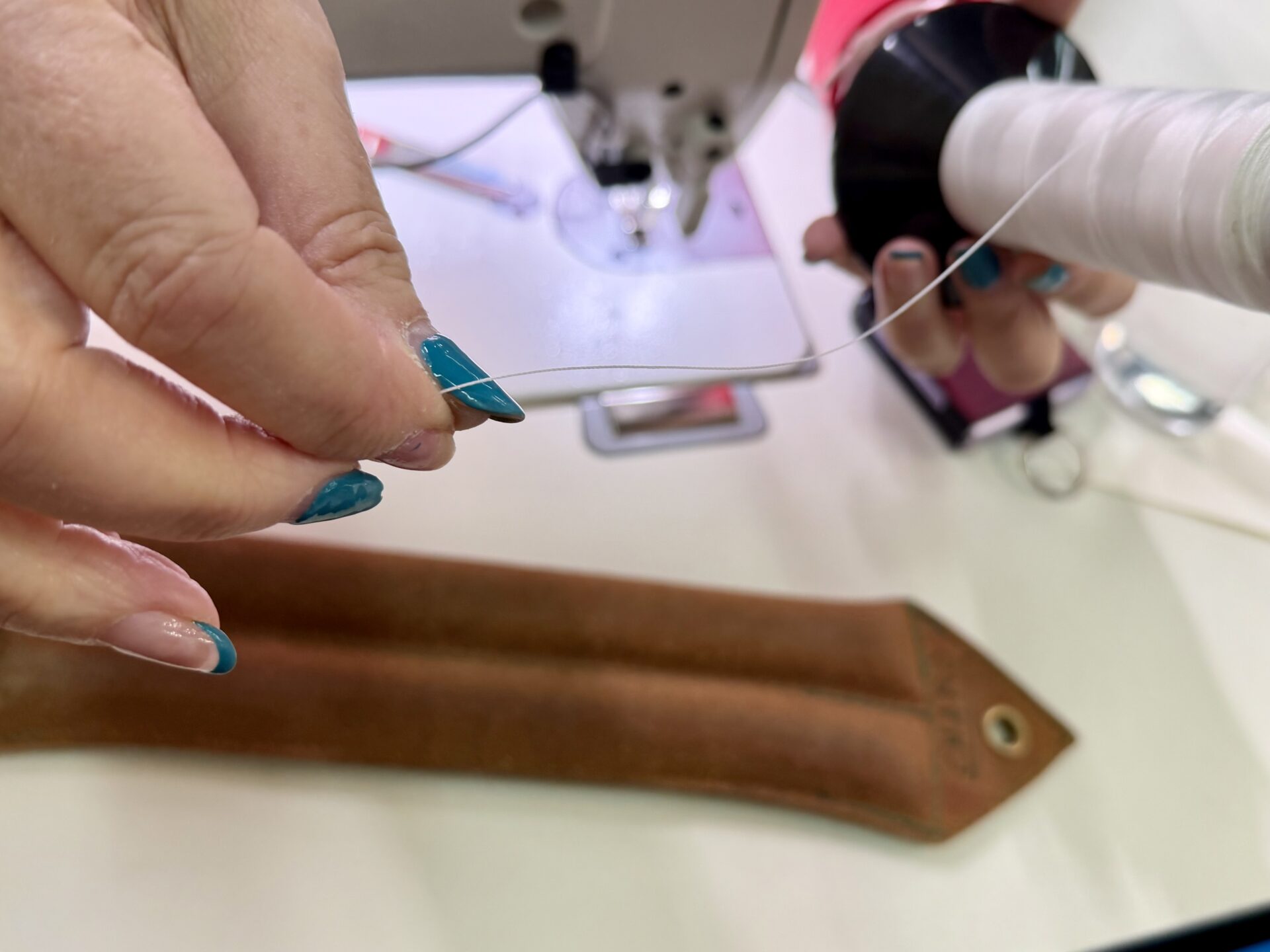 La columna vertebral de las cicatrices de un paracaídas es un hilo blanco. De nylon, imposible de romper con la mano. No es el hilo rojo del destino: es el hilo blanco que une la vida con la seguridad. Cada puntada recorre la tela y sostiene decisiones, tensiones y vidas suspendidas en el aire. Charo recuerda haberse cortado los dedos al principio, por inercia. Pero el blanco no es un capricho y desvela que es el tipo de hilo y color que mejor resiste el sol, permite detectar cualquier anomalía y asegura que nada pase desapercibido. Cada salto empieza aquí, donde el hilo blanco traza su camino sosteniendo la vida de quien abrirá la campana metros más arriba. Cuando alguien pregunta si un parche resta seguridad, Charo subraya: “Un parche es una garantía”. Y los militares lo saben. A ninguno le preocupa ver una campana remendada. Al contrario: ese parche certifica que ha sido revisada, extendida bajo la luz, examinada centímetro a centímetro. El parche no es debilidad, es control. Es la señal de que alguien se detuvo justo ahí donde hacía falta reforzar.