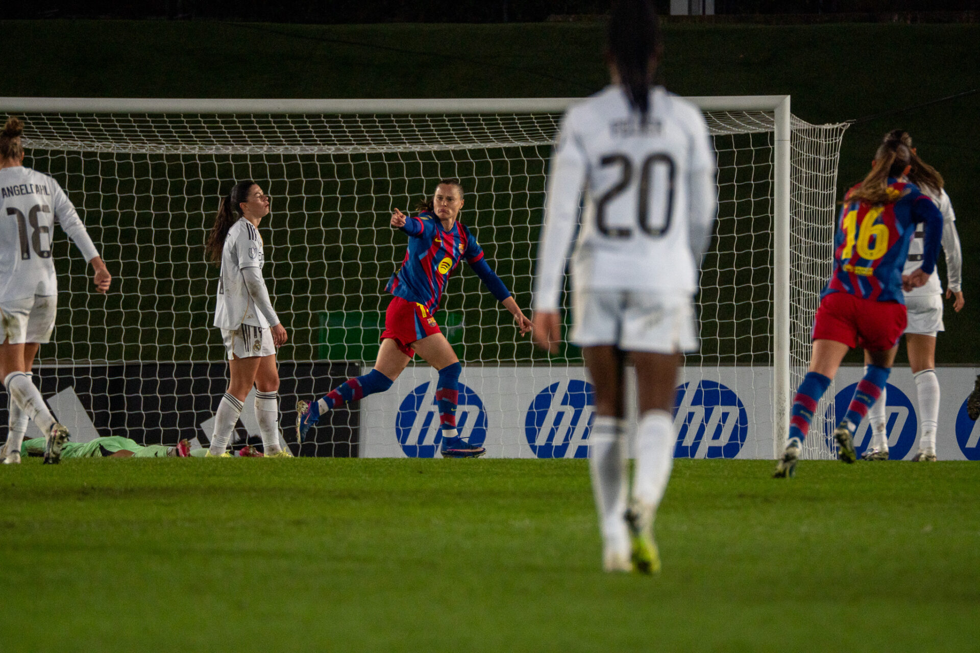 Y en el 66, cuando el Madrid había bajado el ritmo, llegaría el cero a dos para el Barça. Con un chute lejano de Pajor que botaría en frente de Misa, se acabaría colando en la portería, poniendo el segundo y dando más ventaja en el marcador. Bruni y Tolleti por Angendahl y Weir eran los cambios de Pau Quesada para remontar el partido. Graham y Pina dejaban el campo para que entraran Kika y Salma en el conjunto azulgrana. Y la sentencia llegaría en el 72 con un centro de exterior de Patri que pondría al fondo de la red Salma. Dos cambios en el Madrid, Dabritz y Redondo por Feller e Irune en el 75.