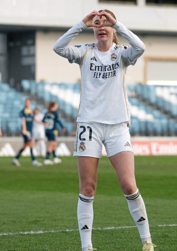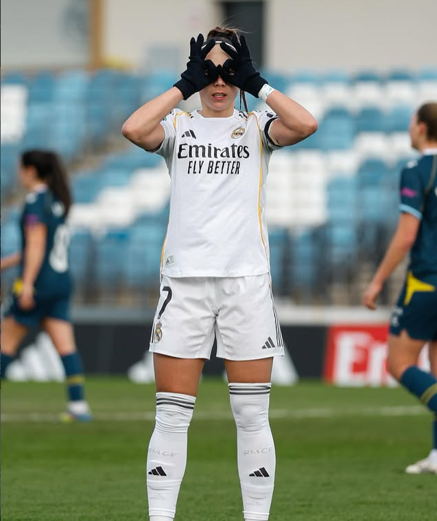 El conjunto de la capital impuso su ley desde el pitido inicial ante el Espanyol, monopolizando la posesión, presionando tras pérdida y empujando a su rival muy cerca de su propia área. Las blancas encontraron profundidad por las bandas y dinamismo por dentro, moviendo el balón con velocidad hasta encontrar espacios. El dominio tuvo premio muy pronto: en el minuto 5, Signe Bruun culminó una rápida combinación ofensiva con un disparo a la escuadra que abrió el marcador y encendió al público.
