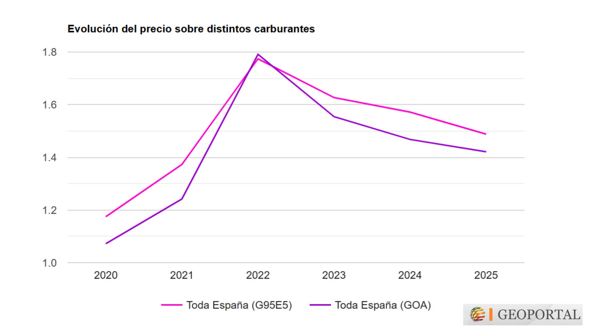 Por ahora, los precios para el consumidor final están lejos de los niveles alcanzados durante la guerra de Ucrania. El precio medio de la gasolina (G95E%) fue ayer de 1,577 euros/litro, cuando en 2022 (media anual) alcanzó los 1,774 euros. En el caso del diésel se situó en los 1,598 euros, frente a los 1,791 euros en 2022. Durante 2020, con el parón de la pandemia, el gasóleo apenas superaba el euro 1,072, mientras que la gasolina se situaba en 1,175 euros.