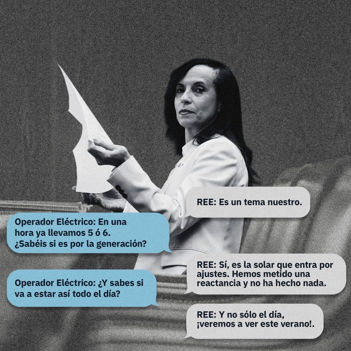 “Sí, es un vaivén de tensión importante. Es por la entrada de la solar”. “Hay variaciones muy grandes en la fotovoltaica. Es por problemas de la fotovoltaica”. “Es un tema nuestro. No sólo el día, ¡veremos a ver este verano!”. “Es porque apenas hay nuclear en el sistema… Ya pasó ayer tarde y no es algo puntual”, son extractos de estas conversaciones, a cuya transcripción ha tenido acceso Artículo14, y con las que la Comisión que investiga el apagón en el Senado ha confrontado a la presidenta de REE, Beatriz Corredor, este miércoles.