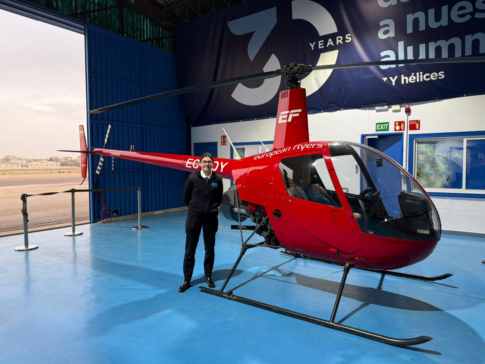 Con apenas 18 años, Valeria Sainz Palomo tiene muy claro que su futuro profesional está en el aire. Alumna de la escuela European Flyers, su intención es convertirse en piloto de helicóptero. Su vocación no es casual: creció viendo a su padre volar y escuchando historias de rescates que realizaba en Salvamento. Hoy, ese recuerdo familiar se ha convertido en su proyecto de vida.