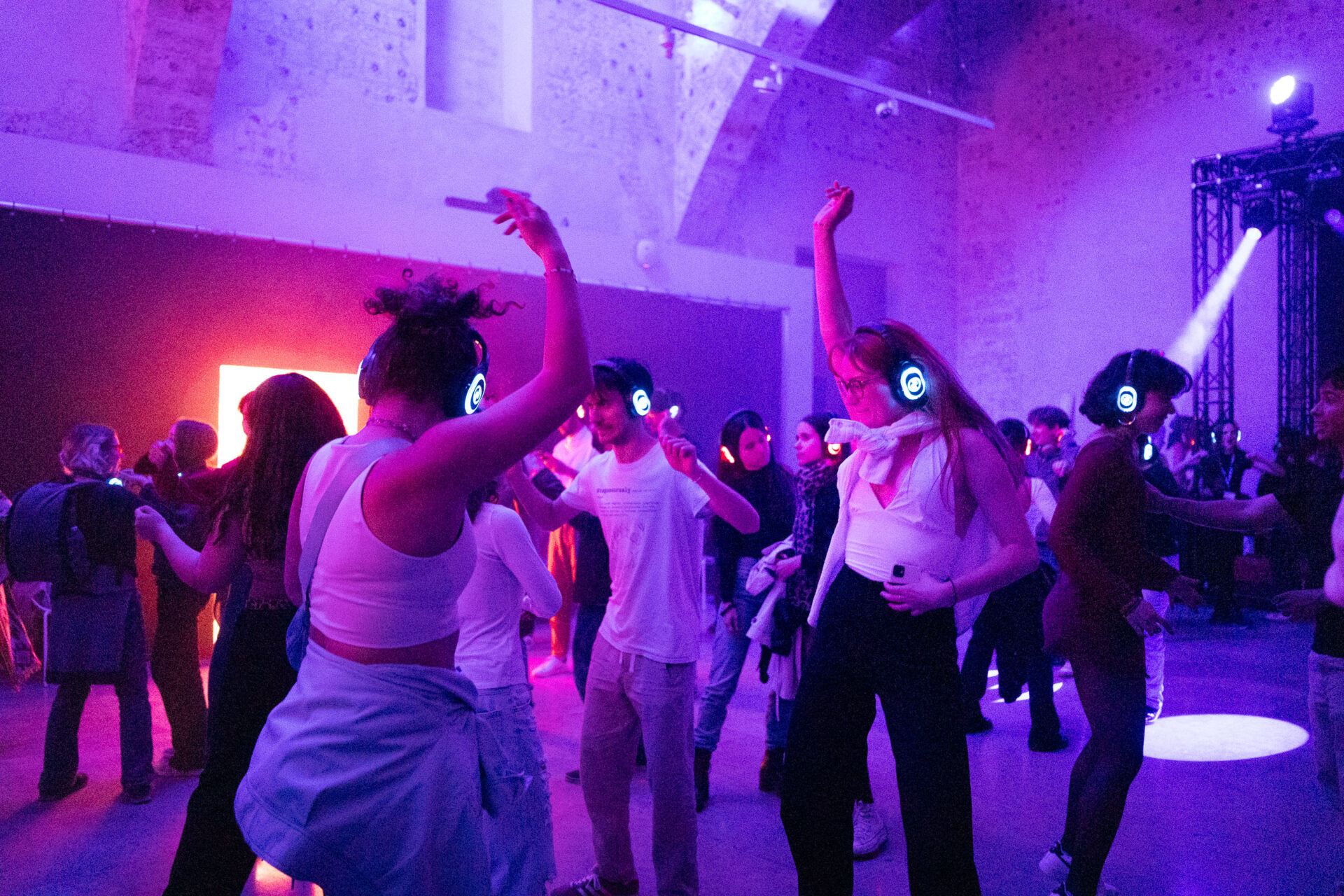 La discoteca silenciosa tendrá lugar en la Sala Refectori desde las 20:10 horas, aproximadamente, y hasta la hora de cierre. Los DJ reproducirán sus sesiones a través de los auriculares, el llamativo concepto de este tipo de discotecas.