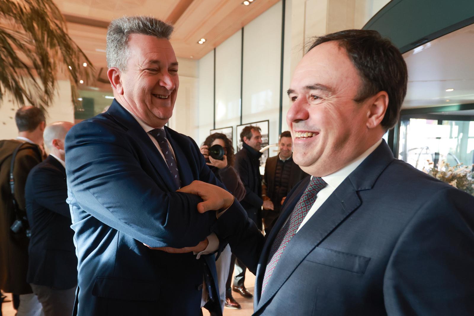 Antes de sus declaraciones, ha sido introducido por el president de la Generalitat Valenciana, Juanfran Pérez Llorca.