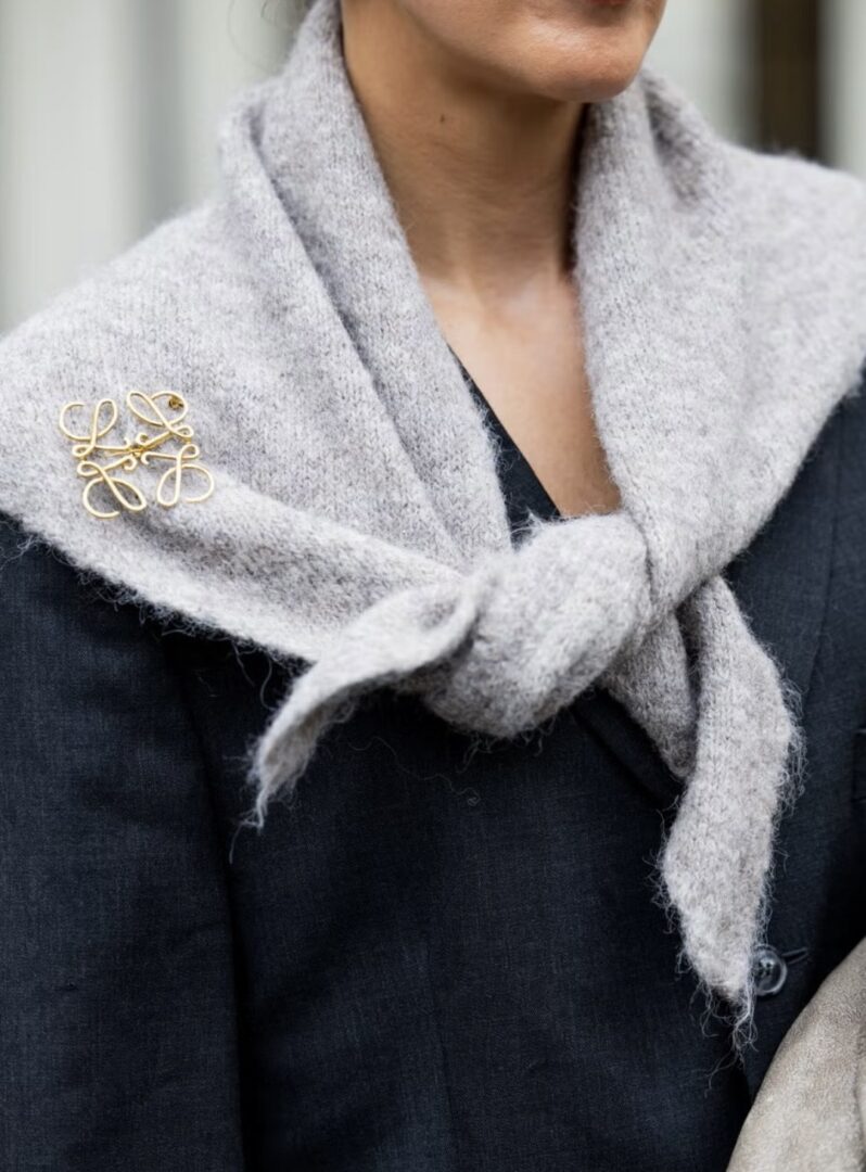 Las balaclavas y pañuelos son perfectas para lucir broches. Colócalos en los extremos o en el centro para aportar ese toque sofisticado que elevará tu look al instante.