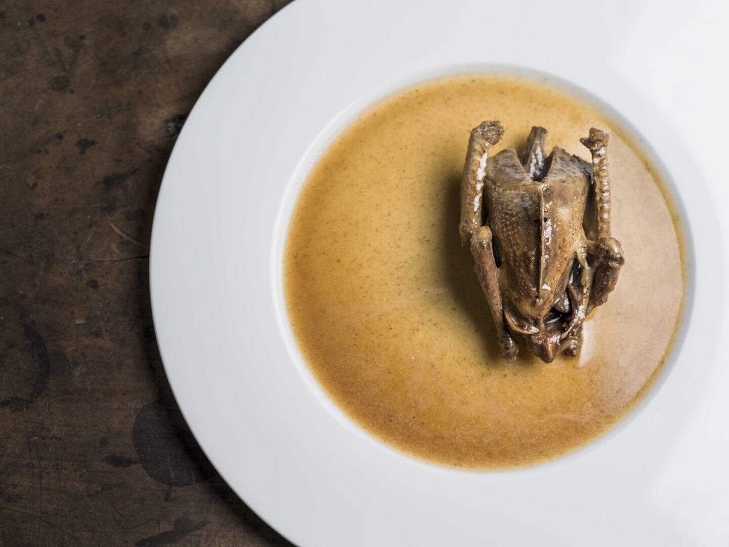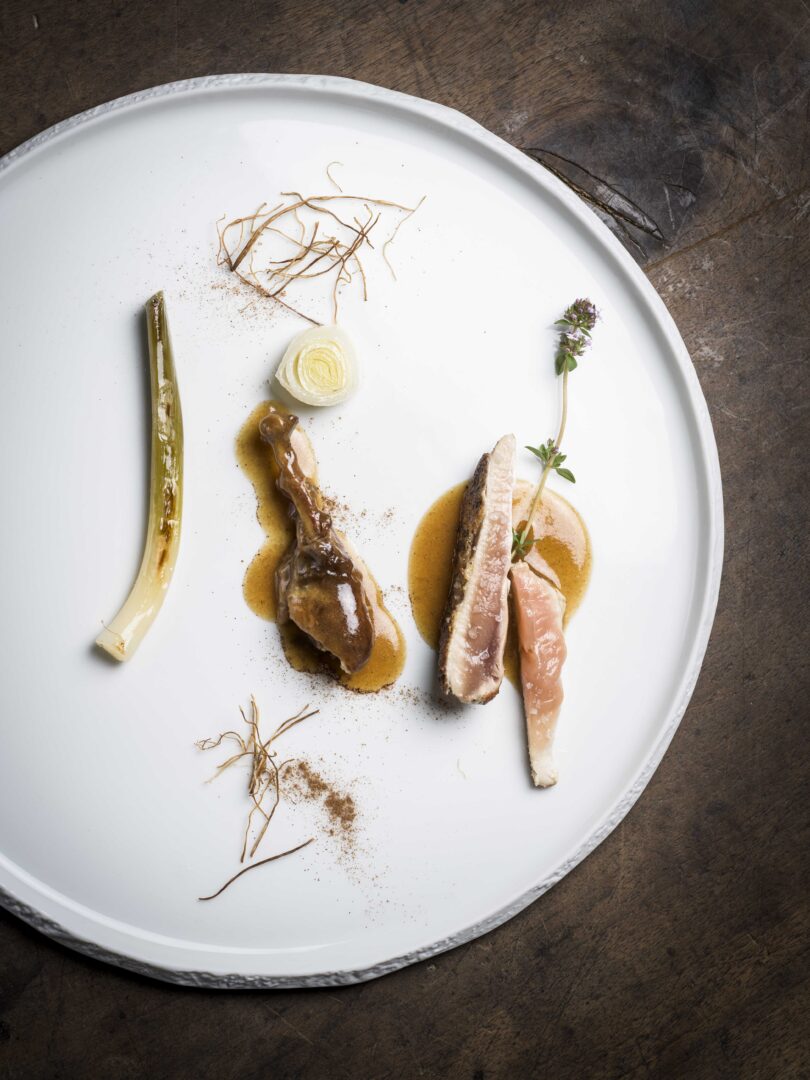 La afinidad entre ambos cocineros nace de una filosofía compartida, la de cocinar desde el territorio, intervenir lo justo y dejar que cada producto se exprese con nitidez. Aquí no hay trampantojos ni discursos barrocos. Hay consomés que reconfortan, aves que saben a lo que son y verduras tratadas con la misma dignidad que la mejor pieza de caza. El menú, compuesto por once pases, se articula como un recorrido donde la huerta de Peña y la despensa cinegética de Lera se van entrelazando con naturalidad.
