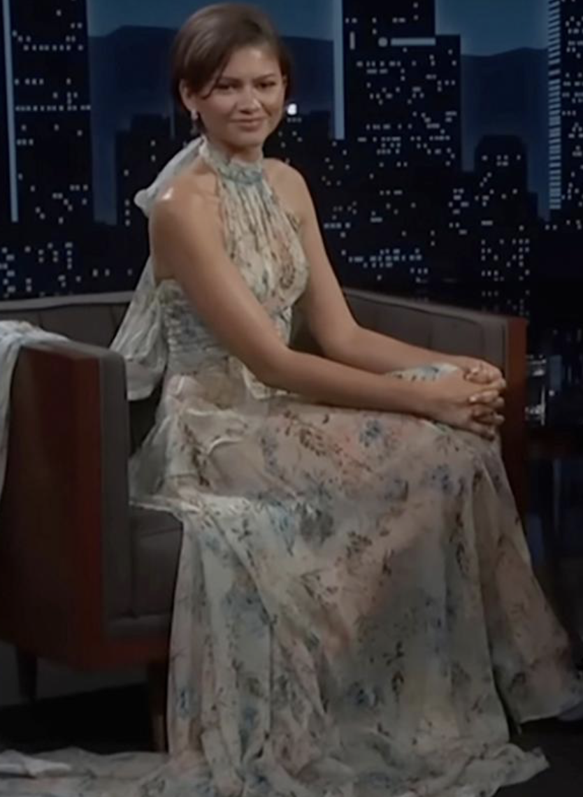 El tercer movimiento de la secuencia llegó el 16 de marzo, a la entrada de Jimmy Kimmel Live!, y fue importante precisamente porque cambió la silueta sin romper el relato. Zendaya apareció con un look de Moschino otoño 2026 formado por blazer gris de hombros marcados, bermudas a juego y una camisa blanca oversize con puños de volantes desmesurados, rematado con salones blancos Christian Louboutin Miss Z.