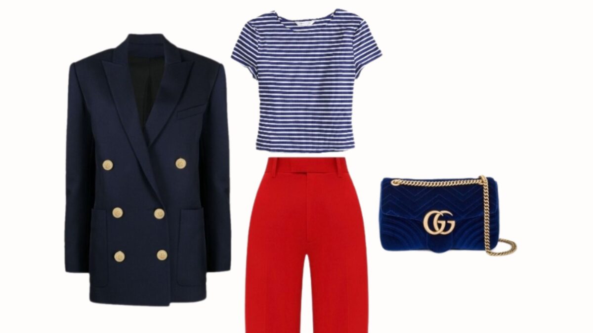 También es posible jugar con proporciones. Un total look blanco con un único elemento en azul y un toque rojo puede ser suficiente para lograr ese efecto visual sin caer en el exceso.