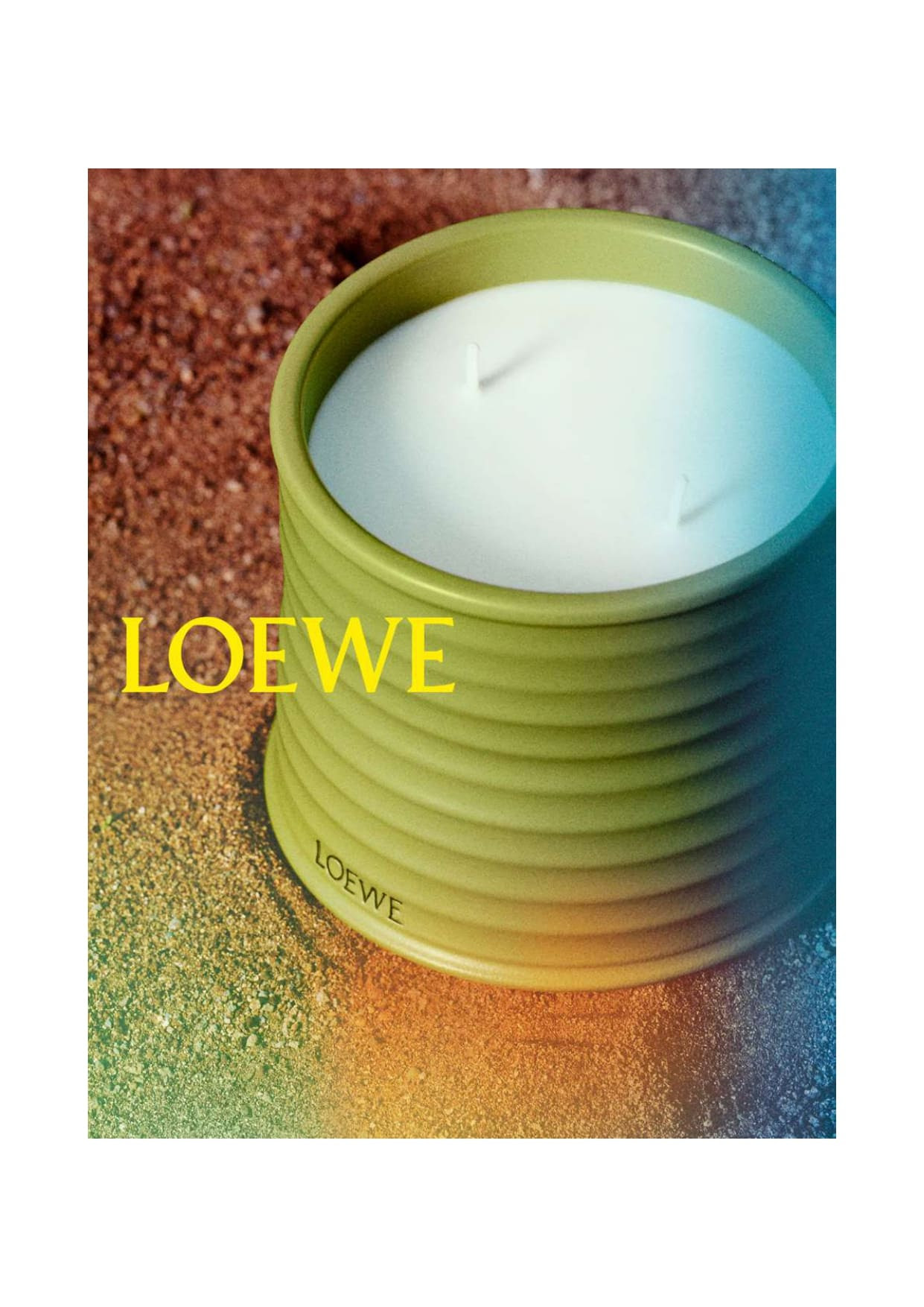 La relación entre fragancia y botánica se extiende además a la línea LOEWE Home Scents. La marca incorpora en esta narrativa sus velas, concebidas a partir de una única nota botánica, y las sitúa en composiciones de bodegón con recipientes artesanales de terracota sobre los mismos paisajes salvajes. Entre rocas, arena, flores y vegetación, estos objetos se integran en la escena como prolongación doméstica del universo natural que define la campaña.
