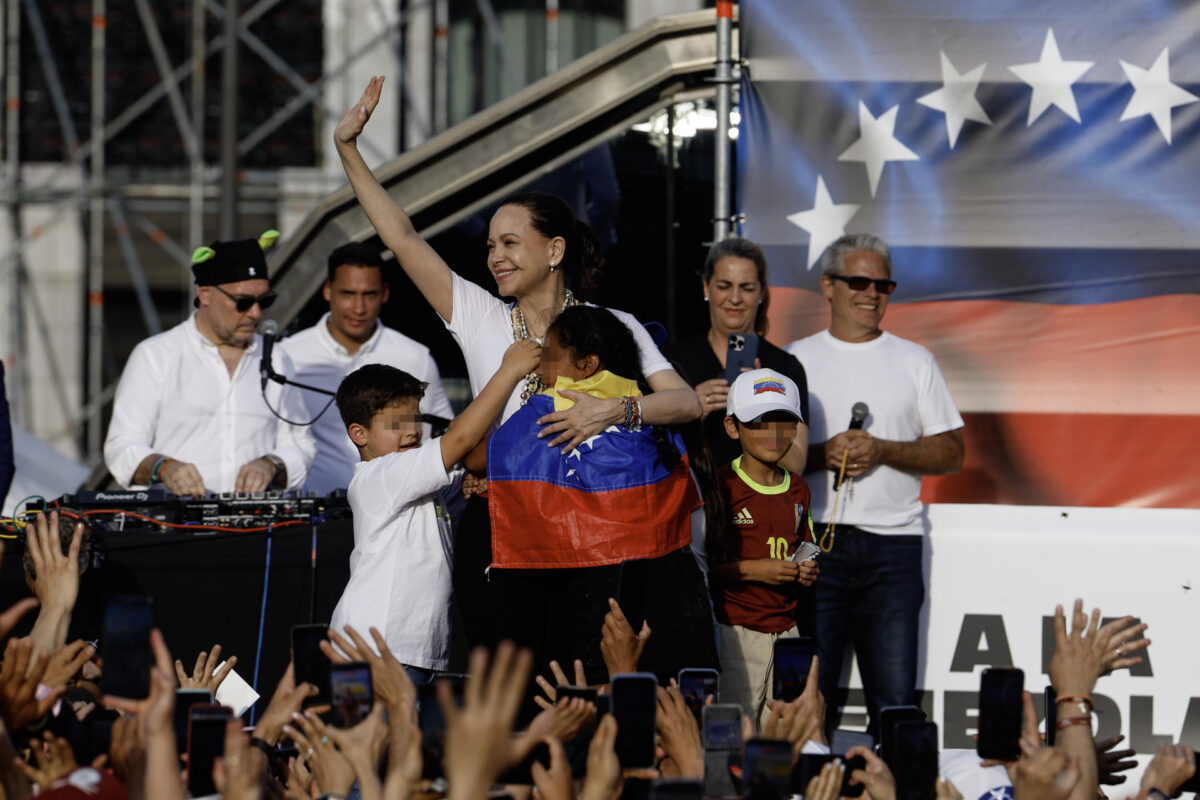 Había unanimidad en describir a la líder opositora como una mujer “valiente” en su lucha por la defensa de la libertad y los derechos humanos frente al régimen de Nicolás Maduro. “Transición a la venezolana”, se coreaba en la masiva concentración, a la par del grito de “elecciones libres” como vía para recuperar la democracia en su país.