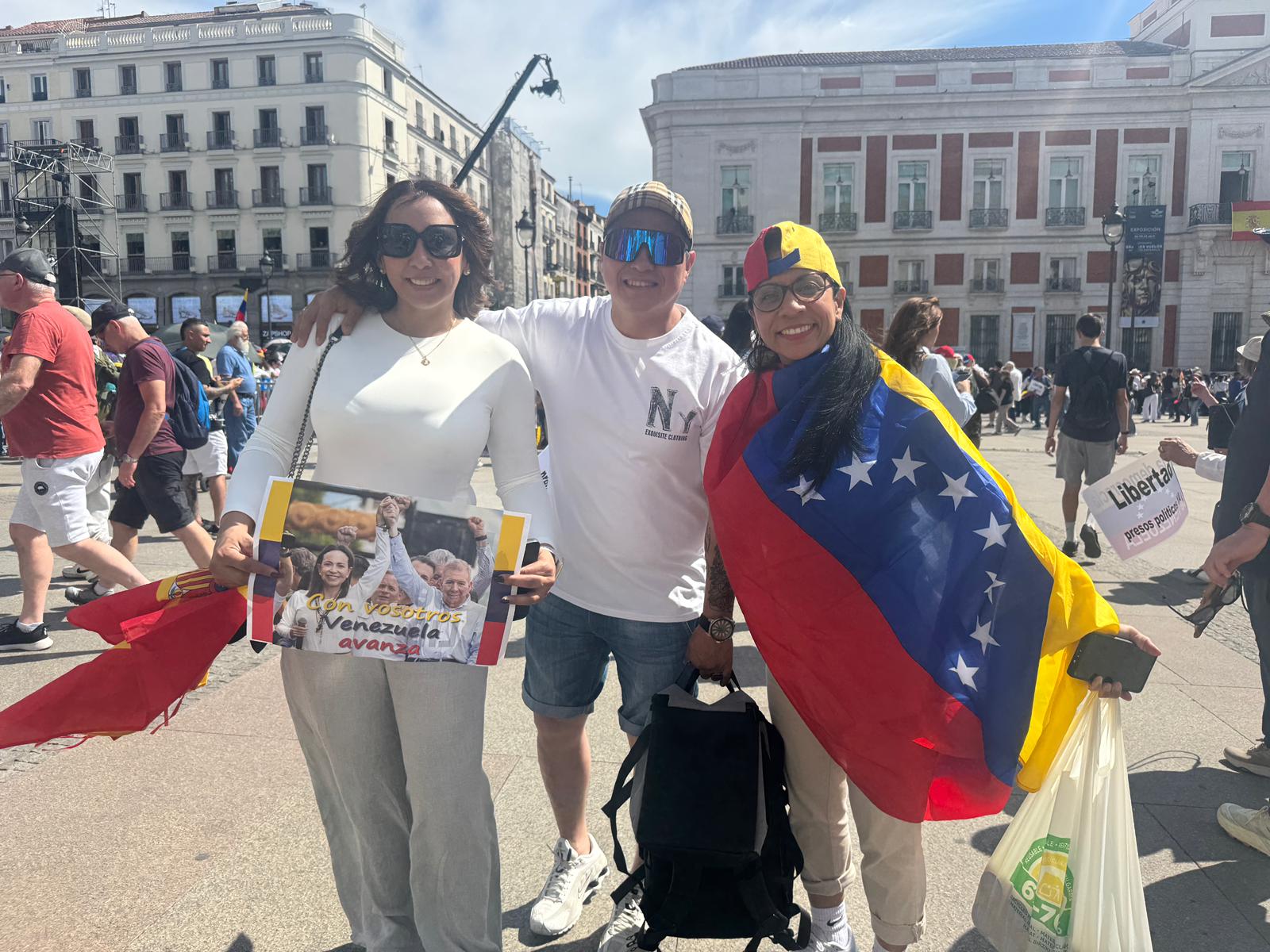 Jessica Contreras, una de las asistentes, acudía a la concentración junto a otros compatriotas “para apoyar a María Corina y representar a Venezuela“. En declaraciones a este periódico, aseguraba que la líder opositora es “la única que ha luchado de verdad por nuestro país” y defendía que su figura representa “la libertad de expresión que necesitamos“. “Hay que demostrar al mundo que hay que luchar por Venezuela”.