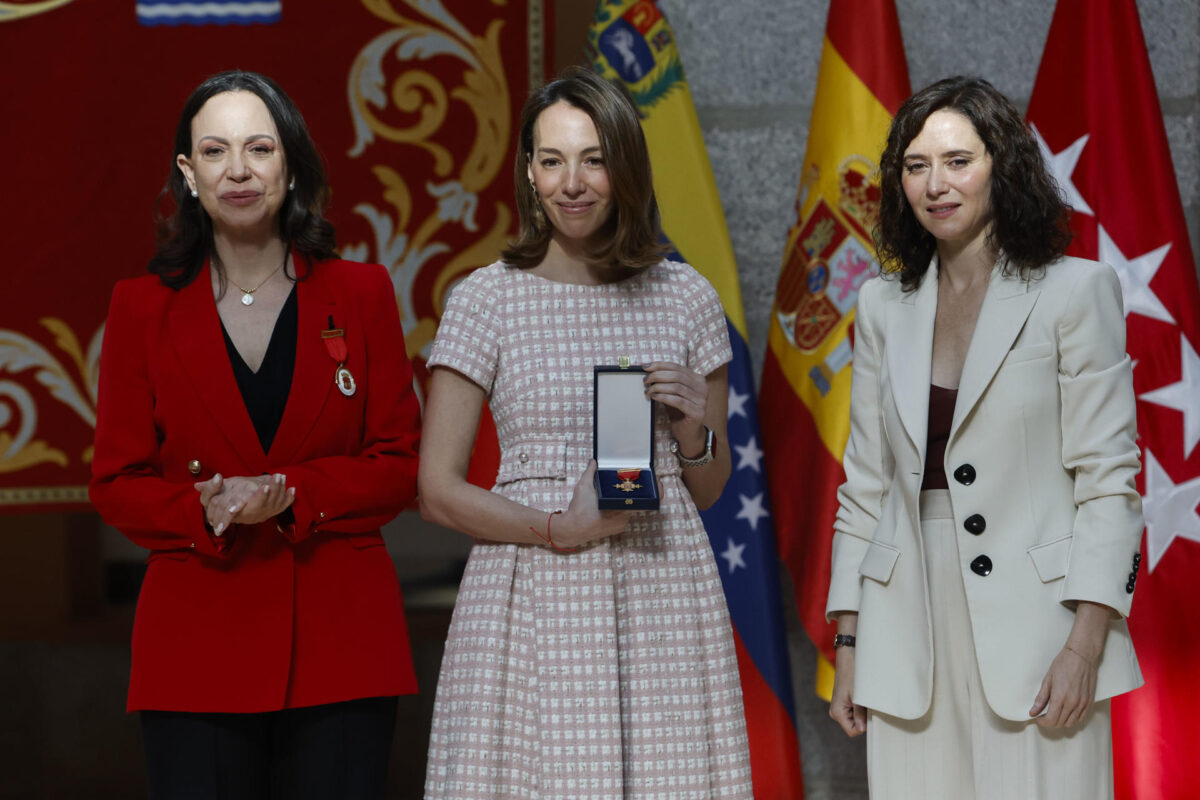 Día de emoción de la diáspora venezolana en Madrid. La líder opositora venezolana, María Corina Machado ha recibido la Medalla de Oro de Madrid de la mano de la presidenta presidenta de la Comunidad de Madrid, Isabel Díaz Ayuso, quien ha señalado: “La libertad es uno de los mayores dones“. “Bienvenida, María Corina, aquí ha sonado tanto tu nombre que aún nos cuesta cree que estemos aquí. Han sido tantos años los que hemos sufrido con tantos valientes como tú, personas que se han jugado la vida por Venezuela. Aquí ha estado esta casa contigo y con Edmundo González. Estamos en representación de todos los que tuvieron que abandonar Venezuela y han encontrado en Madrid su casa. Venezuela sufrió los peligros del comunismo que hoy está reunido en Barcelona, un evento que surgió cuando se enteraron de este”.