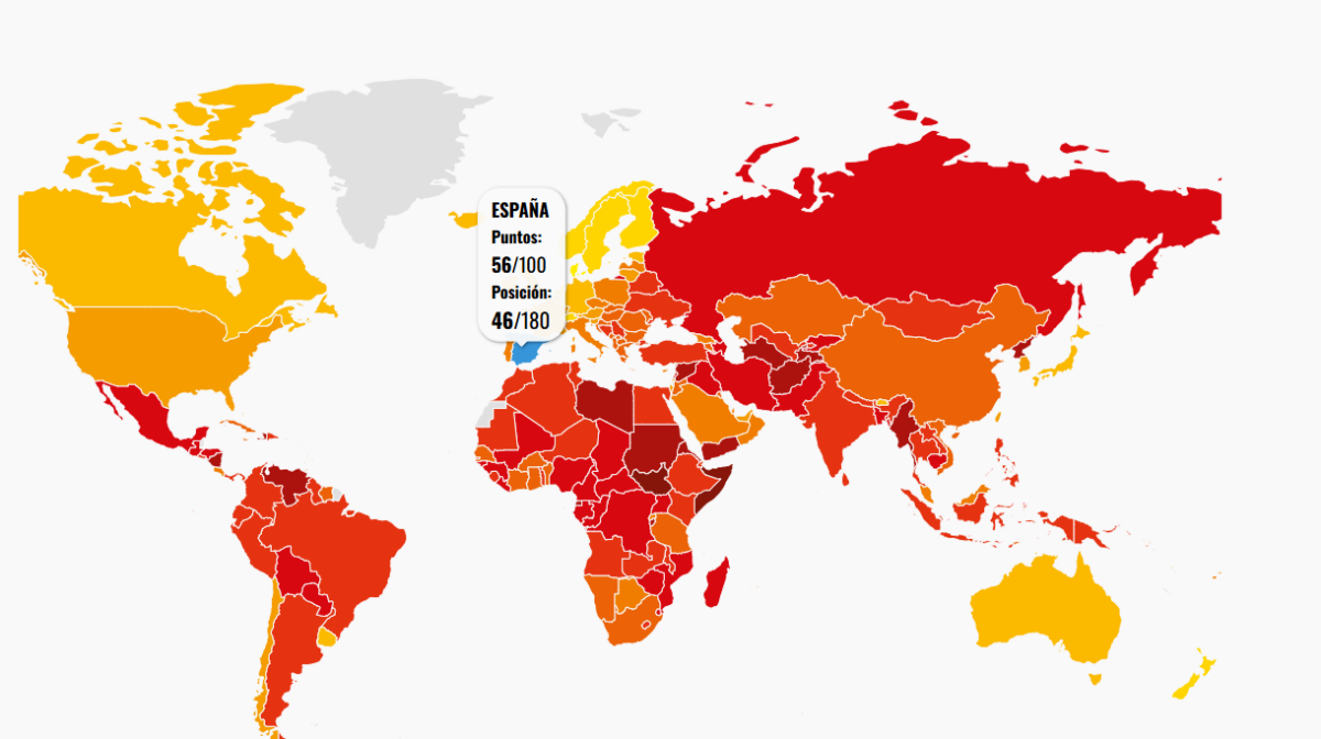 La organización no gubernamental Transparencia Internacional ha dado a conocer su Índice de Percepción de Corrupción correspondiente a 2024 y España ha caído diez puestos en este ranking que mide a 180 países del mundo.