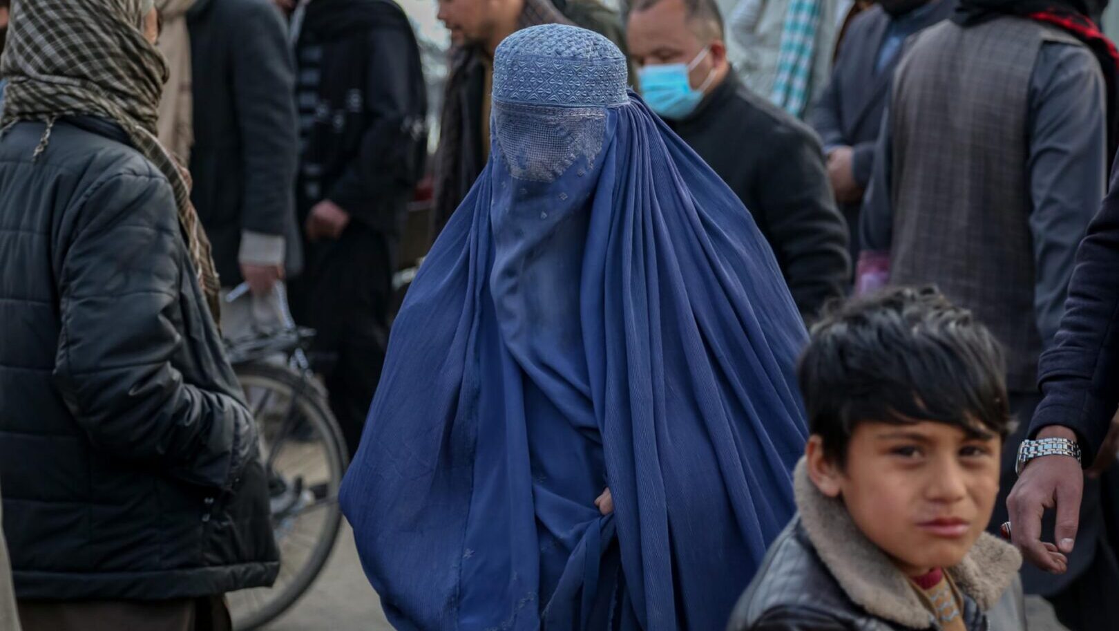 Una mujer afgana vestida con burka camina por un mercado en Kabul, Afganistán, el 6 de marzo de 2025.