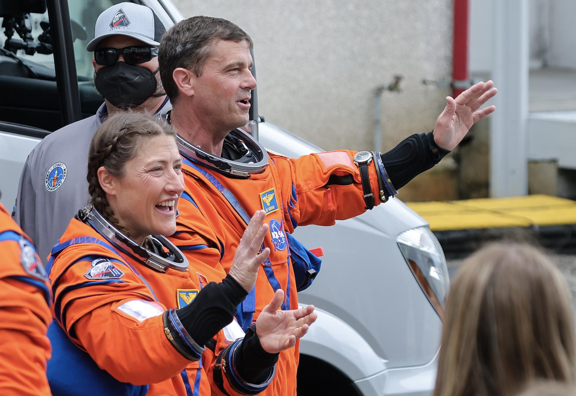 Los astronautas han saludado por última vez a los medios antes de emprender su travesía mientras vestían ya sus trajes especiales de color naranja brillante, diseñados a la medida y con mejoras para controlar su temperatura corporal y proporcionar a la vez mayor protección y movilidad.