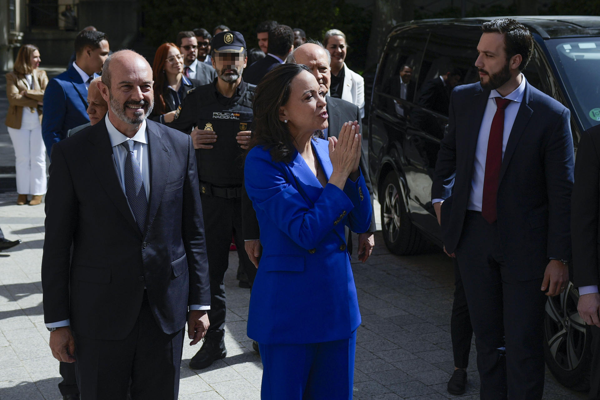El lunes, la Premio Nobel de la Paz acudió al desayuno informativo del Nueva Economía Forum donde fue presentada por un efusivo Felipe González y luego atendió una invitación del Senado de España donde fue recibida por el presidente Pedro Rollán, quien se reunió con ella en la Plaza de la Marina Española para luego sostener un encuentro formal en los Despachos de Honor de la Cámara Alta. A continuación, Machado asistió a la reunión conjunta de las comisiones de Asuntos Exteriores e Iberoamericanos.