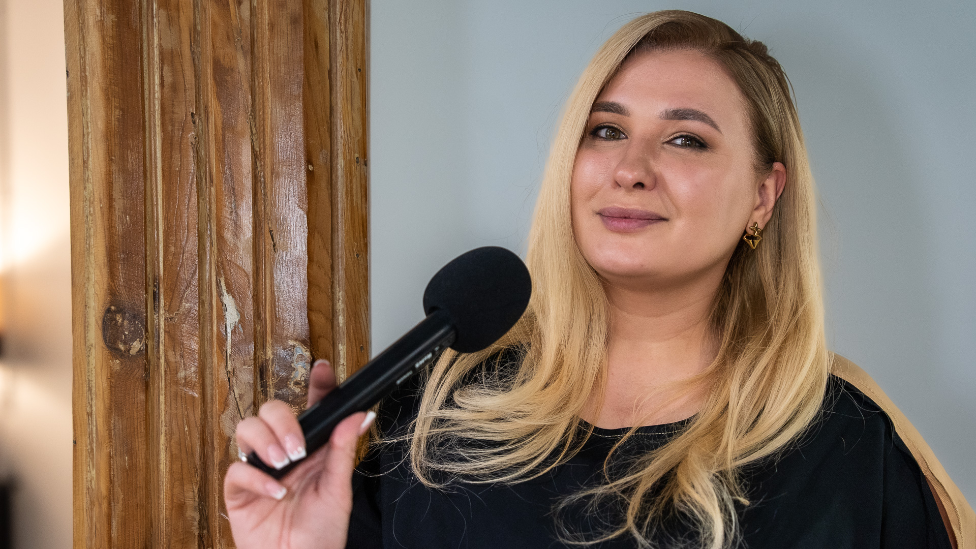 Creció allí y, con el tiempo, se convirtió en una figura conocida en su ciudad, entonces llamada Krasnohormysk, después rebautizada como Pokrovsk. Presentaba fiestas, actos públicos, celebraciones municipales. Tenía una vida reconocible, un lugar, una voz. Cuando en 2014 la guerra se instaló definitivamente en el Donbás y el frente se detuvo a apenas veinte kilómetros, Tumanova entendió que debía moverse otra vez. “Parece que en mi vida la guerra nunca termina, solo cambia de país”, explica Tumanova a Artículo14. Se trasladó a Kiyv sin contactos ni red, convencida de que tendría que empezar desde cero.