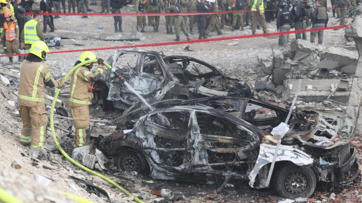El impacto del misil ha causado daños en varios edificios residenciales de Beit Shemesh y también ha destruido una docena de coches, algunos de los cuales han salido volando y han caído dentro del socavón que ha creado.