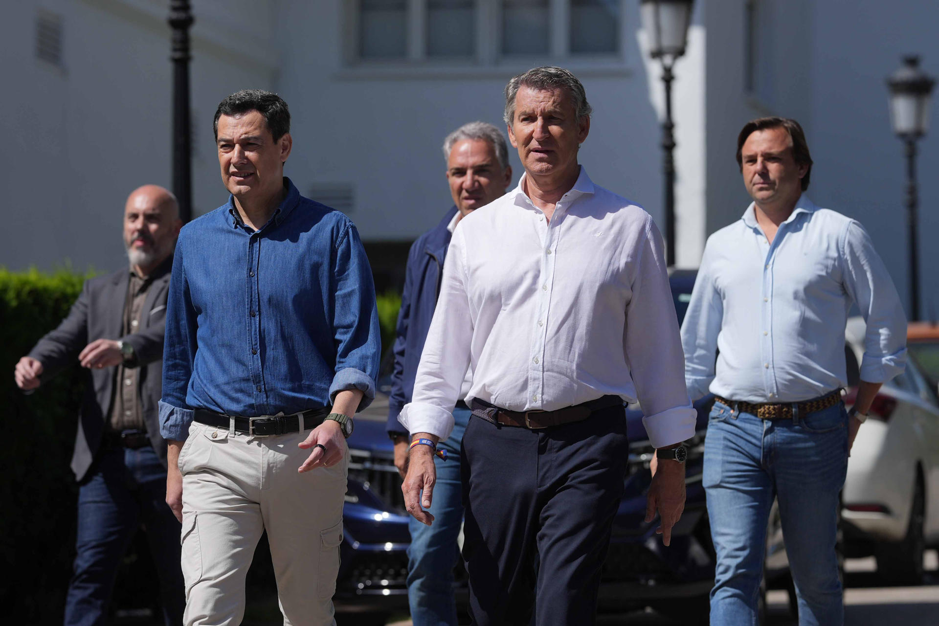 Alberto Núñez Feijóo y Juanma Moreno se subieron juntos a un mitin este domingo en Córdoba. Fue el pistoletazo de salida de la precampaña de las elecciones andaluzas, que se celebran el 17 de mayo. La madre de todas las batallas. Ambos han hablado sin tapujos sobre la estrategia a seguir. Moreno ha reclamado manos libres porque cree que puede reeditar la mayoría absoluta. Un hito gigantesco que le catapultaría de puertas para adentro y para afuera. Y Feijóo le ha dado vía libre, aunque su discurso propio le pueda poner en un brete.