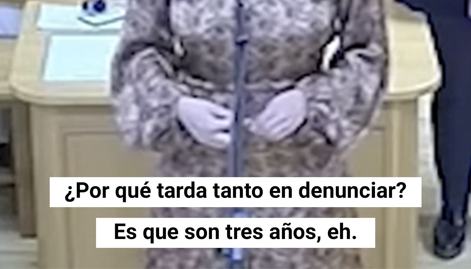 - ¿El tiempo que no ha dedicado usted, que no ha dedicado en todos los años de su carrera judicial, todos los años de toda su carrera judicial, a formarse en perspectiva de género: ¿ha sido debido al miedo?, ¿a que no se atrevía? Es que, son todos los años de su carrera judicial ¿eh? En la carrera no es obligatorio y le van a dar el título igual, pero sí es un dato que no se haya formado, en todos los años de su carrera judicial, en perspectiva de género. ¿Por qué tarda tanto? Es que han sido todos los años de su carrera judicial. ¿Por qué no lo ha estudiado? ¿Porque no se atrevía? ¿Por miedo? ¿Por qué? ¿Cuál es el miedo que hay que tener? Que tenía miedo, tenía mucho miedo (tono de sarcasmo).
