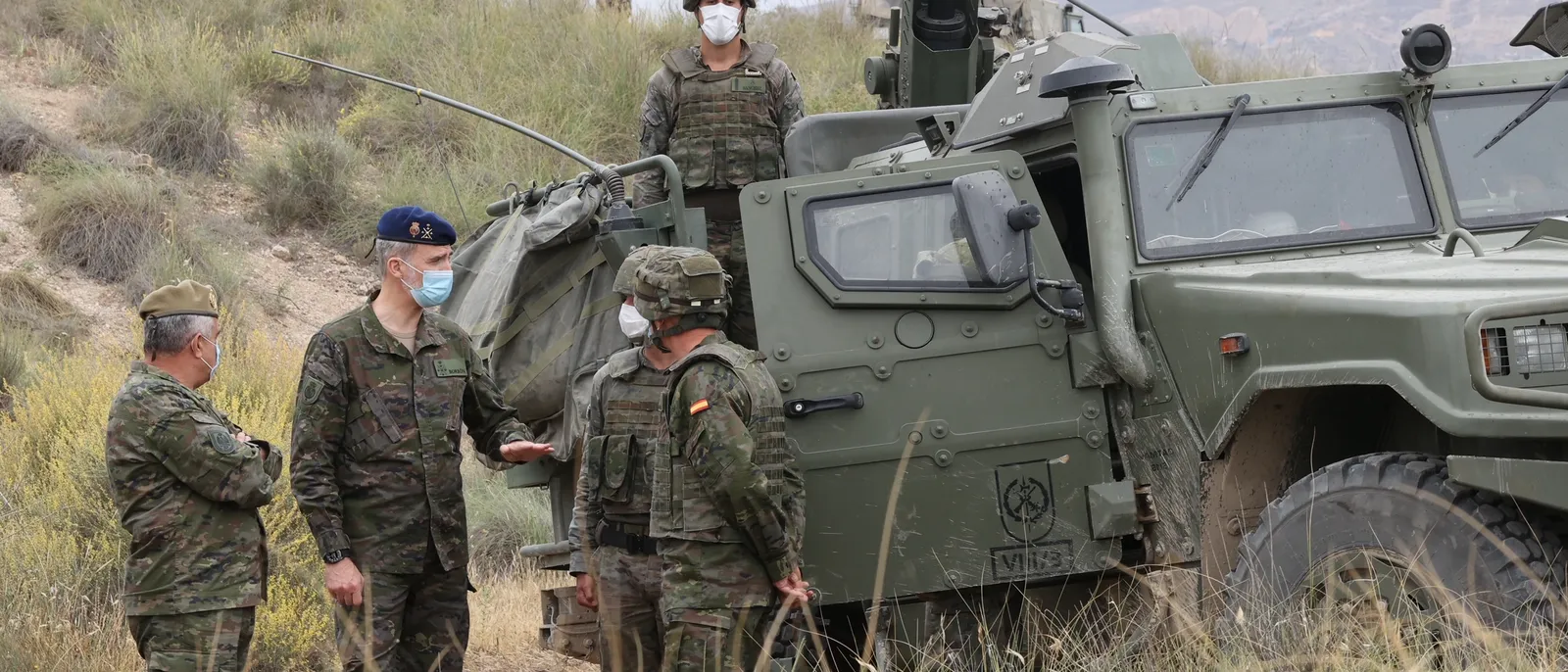 En aquella visita inicial, el Rey pudo conocer los primeros prototipos del Vehículo de Combate sobre Ruedas (VCR) 8×8 ‘Dragón’, una plataforma que ya ha comenzado a cambiar la fisonomía de las unidades blindadas españolas. Lo que en 2021 eran conceptos en fase de desarrollo, en 2026 ya son sistemas integrados que interactúan con enjambres de drones y sistemas contra-UAS.