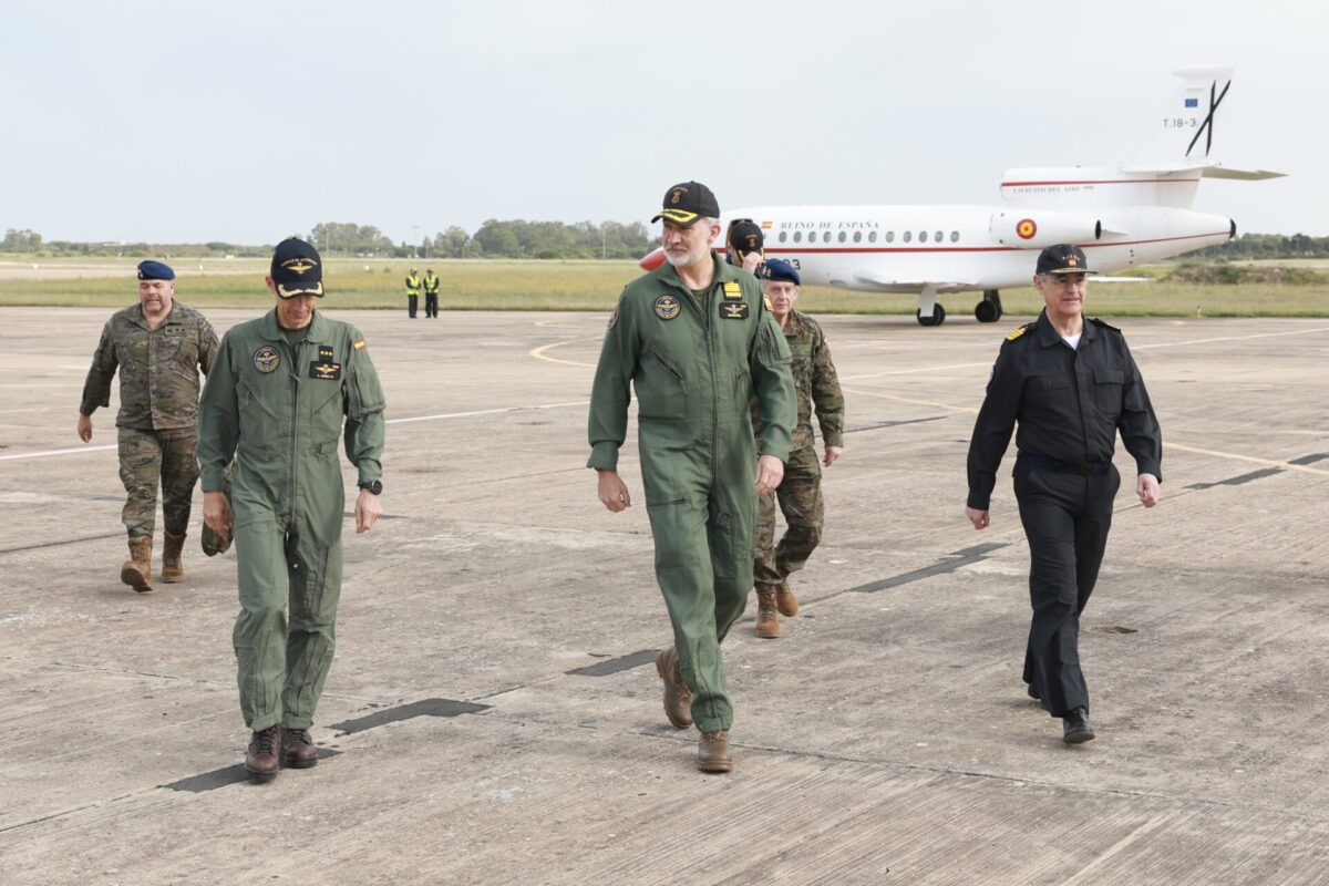 Poco antes de las 09,40 horas, Felipe VI ha aterrizado en la base, donde ha sido recibido por la dotación de la flotilla y ha recibido un briefing sobre las distintas aeronaves que componen está fuerza naval.