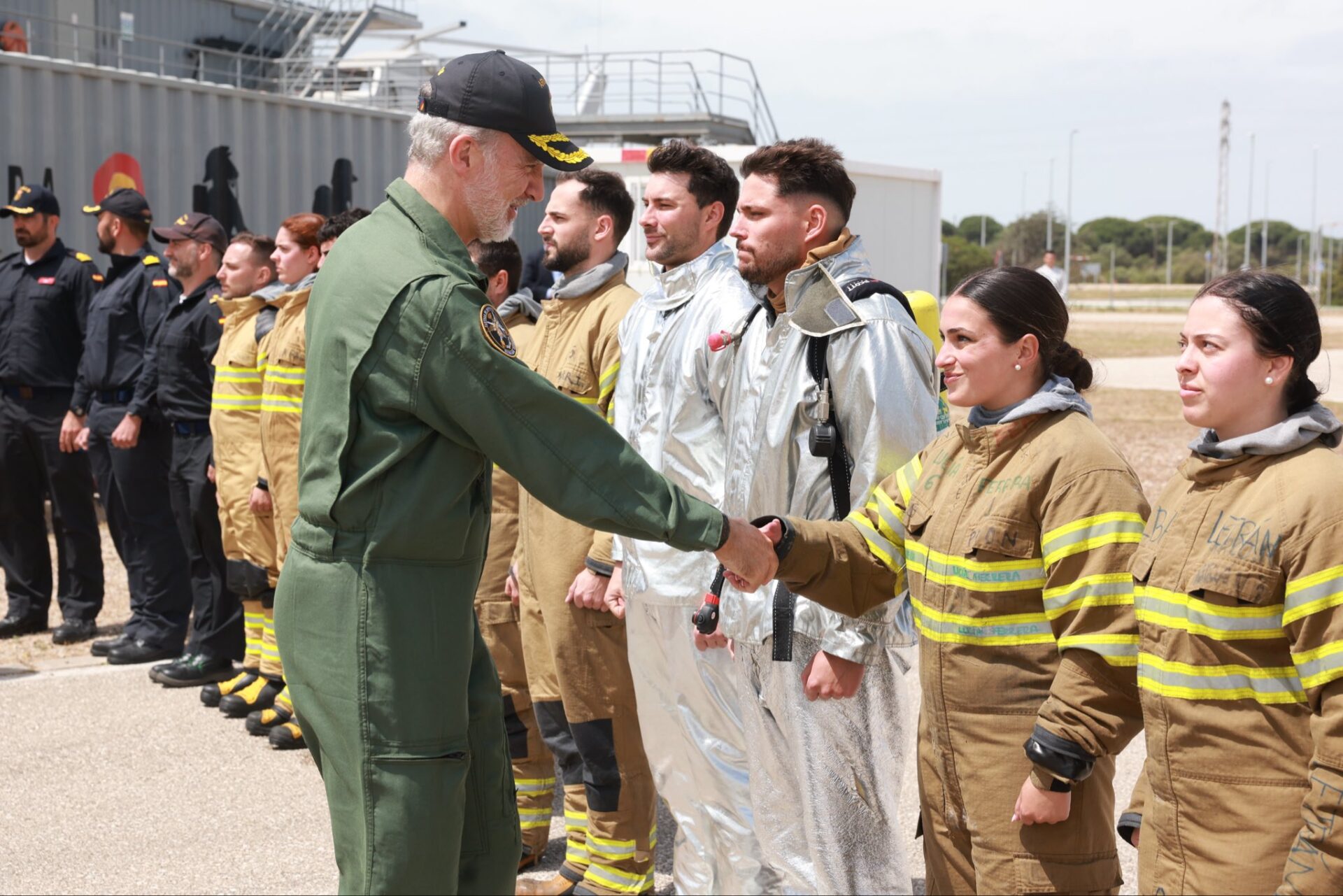 En el Centro de Supervivencia, el rey ha presenciado un ejercicio de un rescate en el mar, y después se ha desplazado al Centro de Adiestramiento de Seguridad Interior (CASI), donde ha supervisado el simulacro del incendio de un helicóptero en la cubierta de vuelo de un barco con el piloto atrapado en el interior y derrame de combustible.