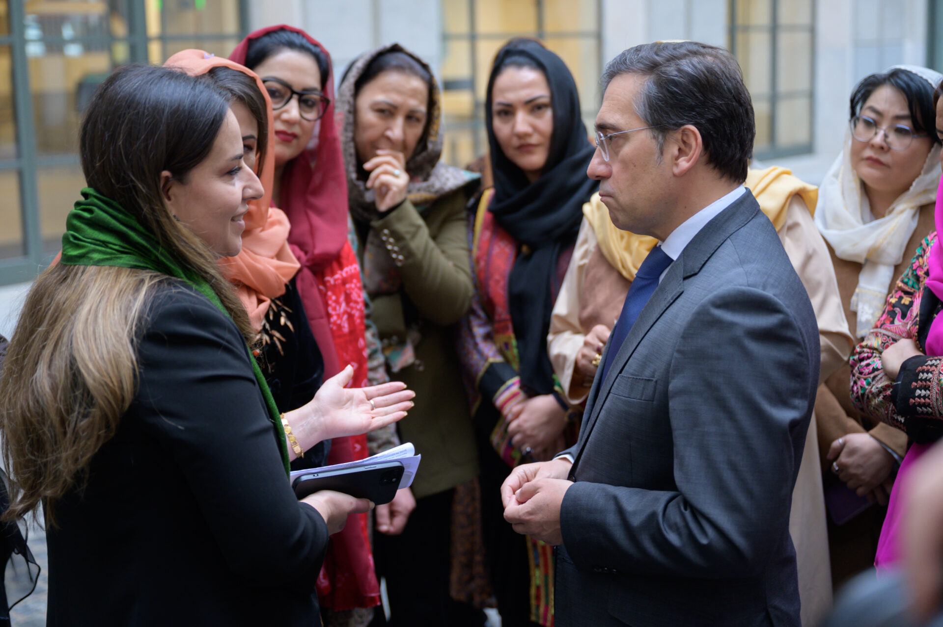 El ministro de Asuntos Exteriores, José Manuel Albares, tiene una marcada agenda exterior en apoyo a la mujer. En Enero de este año, ha lanzado la primera Estrategia de Cooperación Feminista, y también promueve plataformas destacadas como “HearUs” para mujeres afganas, o iniciativas nacionales como el Plan Nacional sobre Mujeres, Paz y Seguridad.