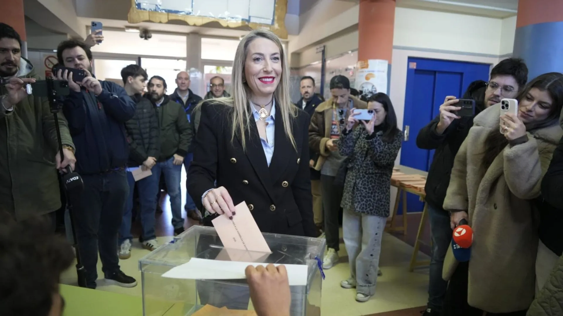 María Guardiola, candidata del PP, ha sido la última de los principales líderes regionales en depositar su voto. Lo ha hecho en Cáceres.