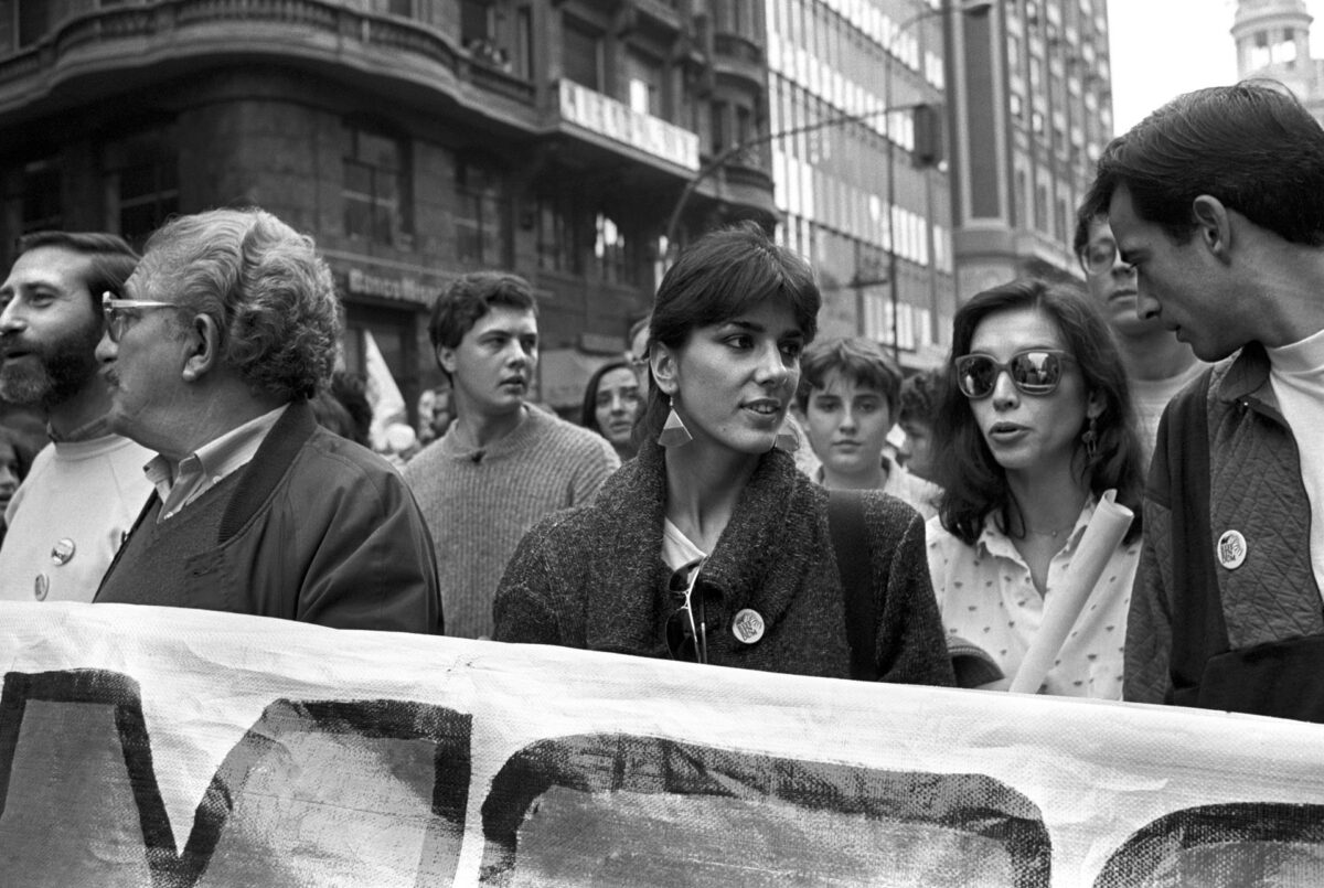 El referéndum se celebró el 12 de marzo de 1986 y preguntaba si España debía permanecer en la OTAN, alianza militar en la que había ingresado cuatro años antes. El resultado fue 56,85% a favor y 43,15% en contra. La campaña previa reunió a organizaciones pacifistas, sindicatos, asociaciones civiles y partidos de izquierda, especialmente tras el giro político del gobierno socialista de Felipe González, que había prometido “OTAN, de entrada no” pero defendió la permanencia durante la legislatura. “Para muchos sectores de la izquierda -reflexionó Falcón- se trataba también de una disputa sobre el rumbo político de la democracia española”.