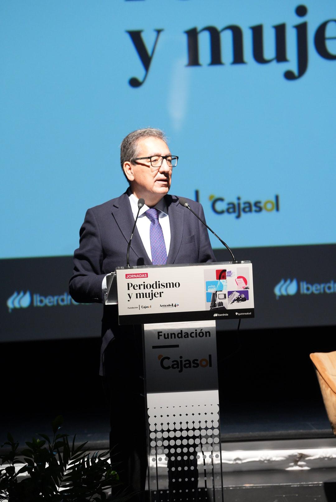 El presidente de la Fundación Cajasol inaugura la jornada: “Es un verdadero placer abrir nuestras puertas para un debate clave sobre igualdad y periodismo”, y subraya que “las mujeres, afortunadamente, ya no están relegadas”, aunque advierte de que “todavía quedan muchas brechas que corregirque ayudarían a atajar los viejos clichés, como el enfoque de género de las noticias, la cuota de puestos de máxima responsabilidad o la visibilidad de las mujeres” .