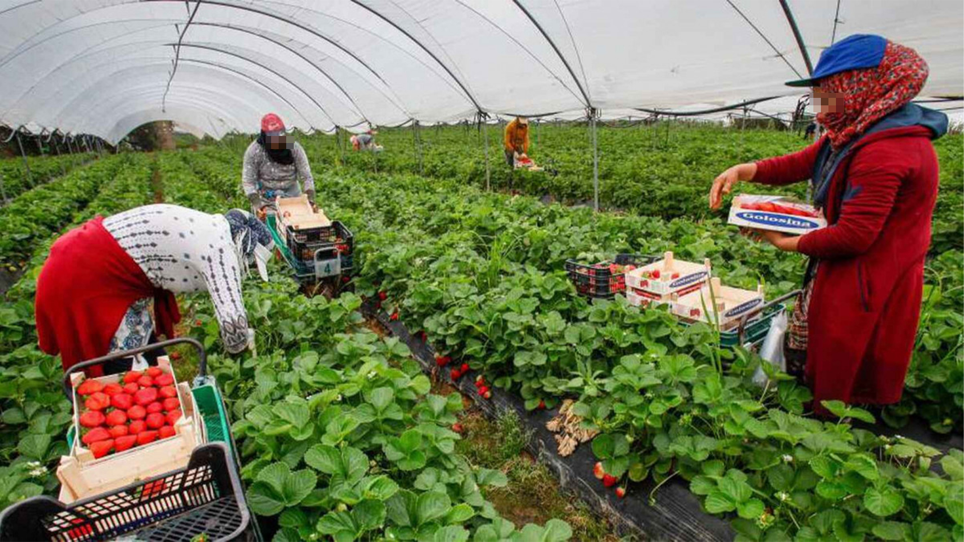 Son las cinco de la mañana. Todavía es de noche cuando suena el despertador en Huelva. La jornada empieza mucho antes de que salga el sol. Preparar mochila (teniendo en cuenta todas las prohibiciones que tú jefe ha marcado, como no poder utilizar manga corta a pesar de los cuarenta grados que marcará hoy el termómetro), buscar el coche compartido (si es que no te falla la persona con la que llegaste al acuerdo) y recorrer las carreteras secundarias que llegan a los invernaderos. Un día más.